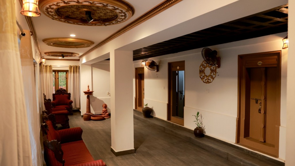 24-hour Room Service, A/c Room, Car parking and valet services, Children's Play Area, Conference hall, Conference hall, Cultural Programs, Food, High speed Wi-fi access, Homely Kerala Food, Indoor games, Internet facility, Iron / Ironing Board, Laundry, Non A/c Room, North Indian Dishes, Private party area, Refrigerator, Safe Deposit Lockers, South Indian Dishes, Swimming Pool, Tour Packages, Transport and Guide Services, Weddings in Kerala, Wi-fi Lobby