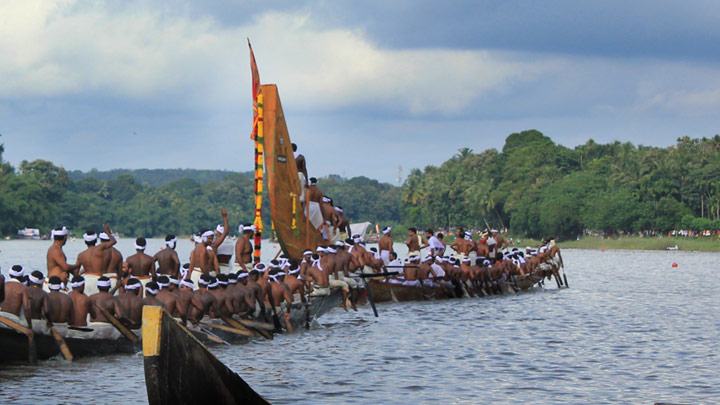 The largest team sport in the world, the Chundan Vallamkali or the snake boat race are of two types. One is the competitive type like the Nehru Trophy Boat Race and the other is the ritualistic type, like the Aranmula Boat Race. While the former is a blend of fun, frolic and passionate competition the latter has more to do with devotion, rituals and prayers. Palliyodams are Aranmula's unique snake boats. Devotees of Aranmula Parthasarathy Temple regard it as the divine vessel of the deity.