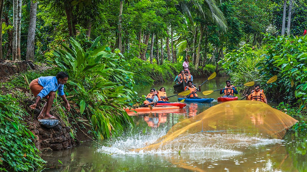 Located on the banks of the Muvattupuzha river in Kottayam district, Maravanthuruthu is a picturesque village rich in culture and tradition. It was here that the Responsible Tourism Mission launched its first STREET project, which aims at developing theme-based streets, as part of which the local community has developed water street, art street, flower street and cuisine street. The cleaned-up water bodies offer kayaking, country boat, coracle boating and shikara boat tours.