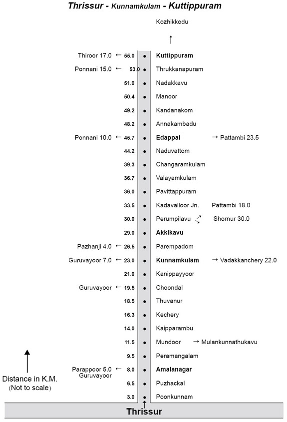 Thrissur 45.5 kms. Ponnani 10.0 kms.Kunnamkulam 22.7 kms.