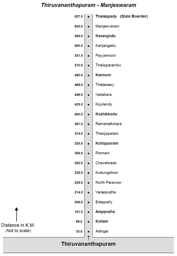 Kozhikode 90.0 kms. Kasaragod 105 .0 kms.Thalasseri 21.0 kms. Thiruvananthapuram. 491 kms.