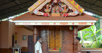 This Devasthanam is an example of how divine worship stands side by side with modern influences. This Madappura is opposite the Pazhayangadi Railway station and yet stands with its traditional uniqueness adjacent to a busy railway compound. The Theyyams are Thiruvappana and Muthappan and they are danced every year. Other Theyyam offerings are conducted here according to the prayers of devotees.